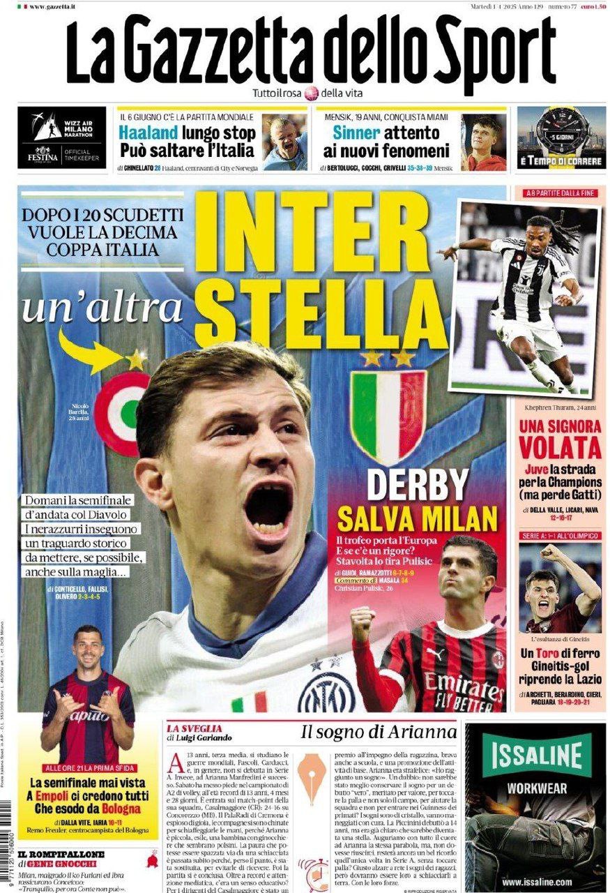 Le prime pagine dei quotidiani sportivi di oggi 1 aprile