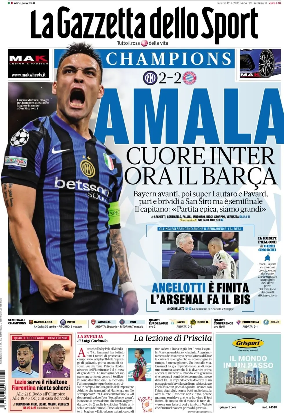 Le prime pagine dei quotidiani sportivi di oggi 17 aprile