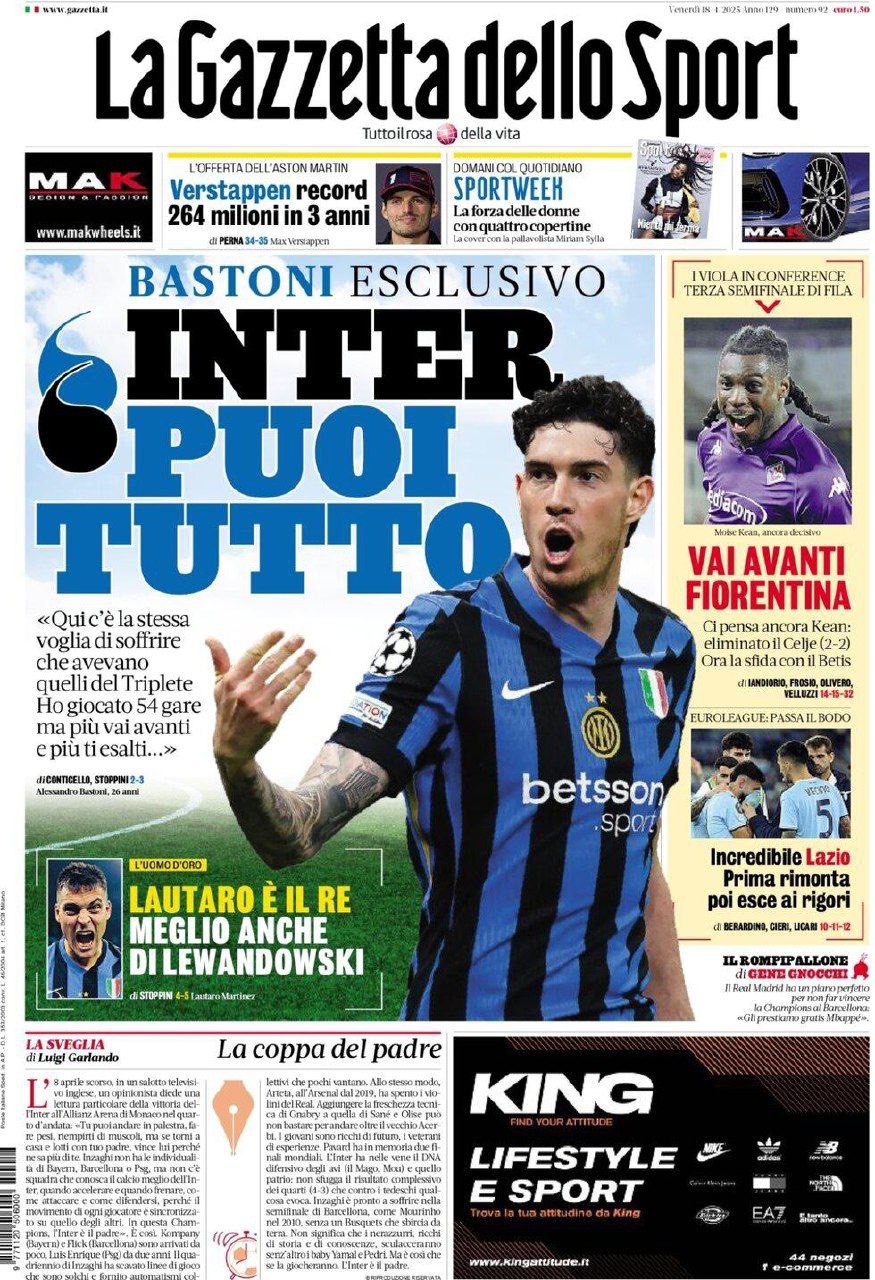Le prime pagine dei quotidiani sportivi di oggi 17 aprile