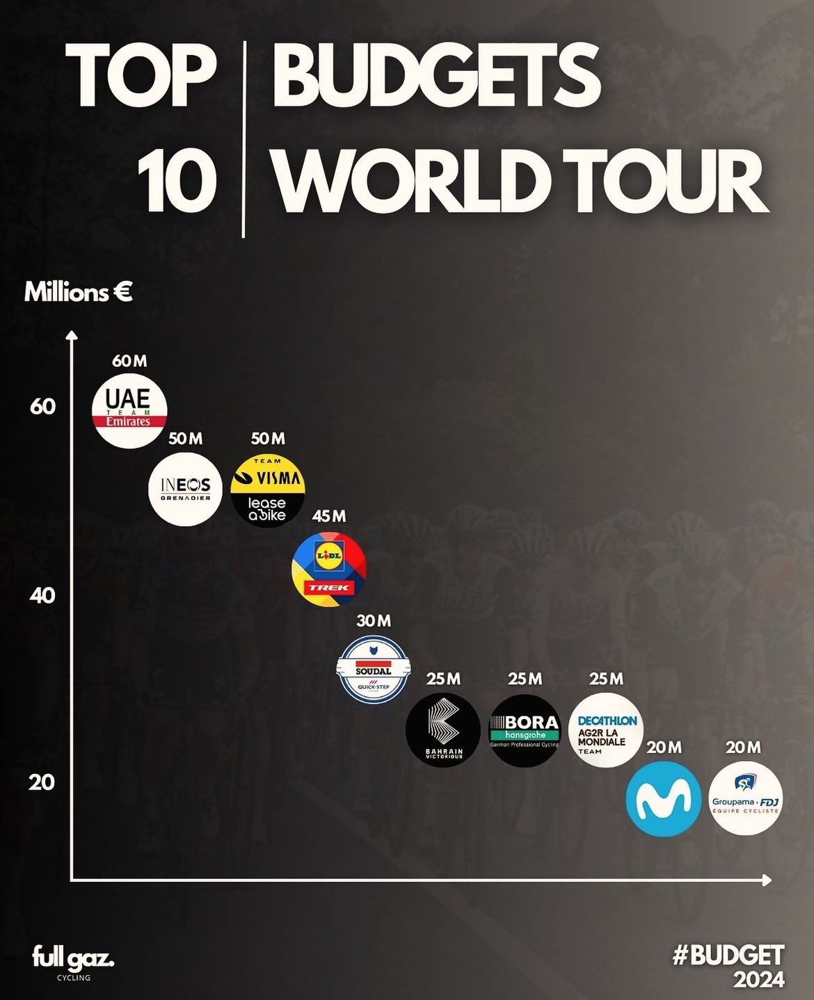Basti sapere che nel 2024, secondo quanto riportato da “L’Equipe”, il budget della Soudal-QuickStep per quella stagione era di 25-30 milioni di euro, quello della UAE era tra i 55 e i 60 milioni di euro mentre quello dell’Intermarché-Wanty (fanalino di coda tra le squadre worldtour) era tra i 12 ed i 18 milioni di euro. Probabile che l’errore sia partito da un’errata traduzione di un articolo di CyclingNews in cui si faceva riferimento all’intero budget della squadra olandese e non alla cifra dell’accordo con la Nike.