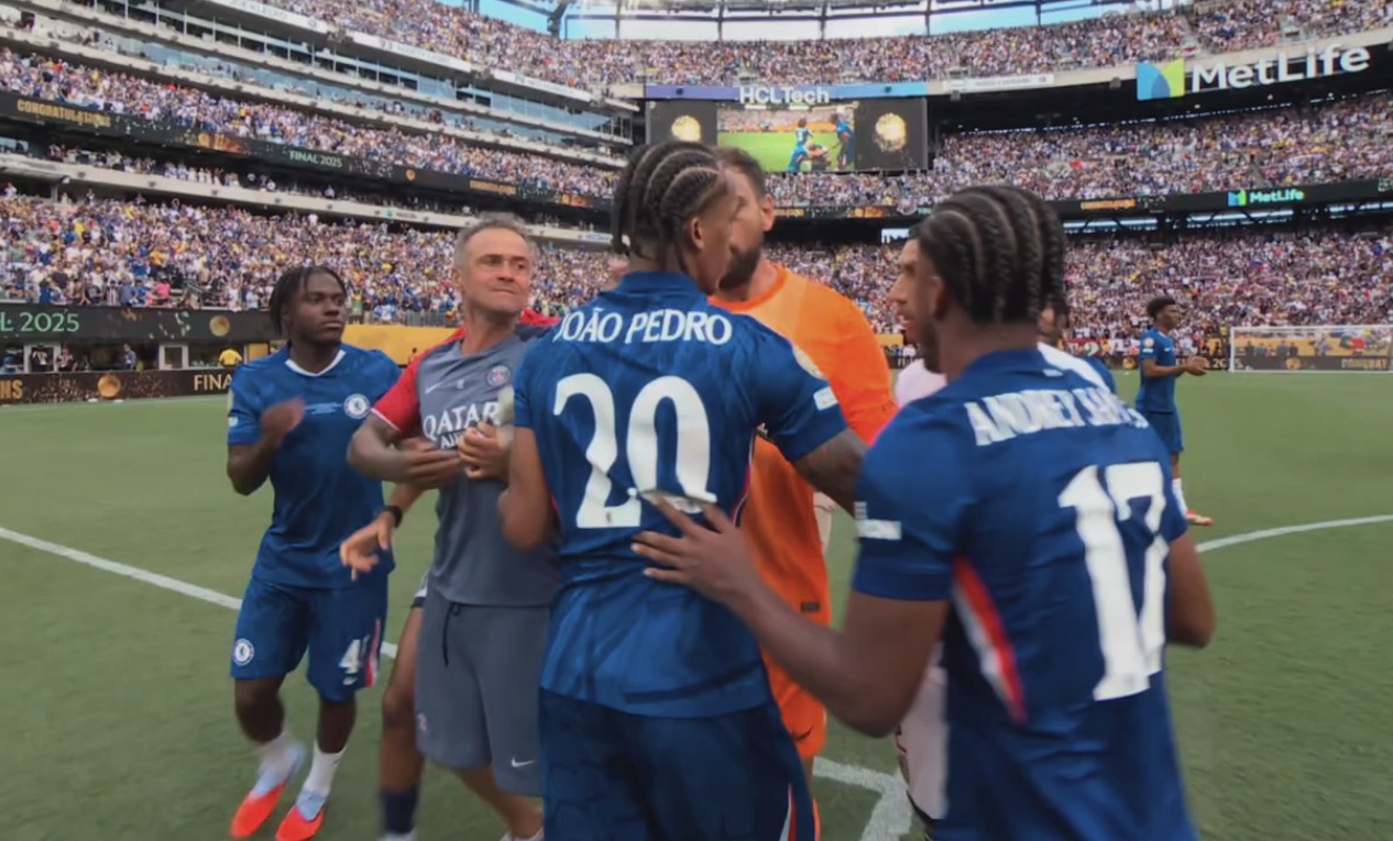 La finale di ieri ha stupito tutti, prima in campo per il secco 3-0 che il Chelsea ha rifilato al PSG, perfetto dalla finale di Champions League alla semifinale del Mondiale per Club, poi anche per il brutto gesto di Luis Enrique. L’allenatore dei francesi è stato coinvolto nel mega tafferuglio dopo il fischio finale e, in mezzo a tutti gli spintoni che i giocatori si stavano tirando, ha toccato/afferrato il collo di Joao Pedro.