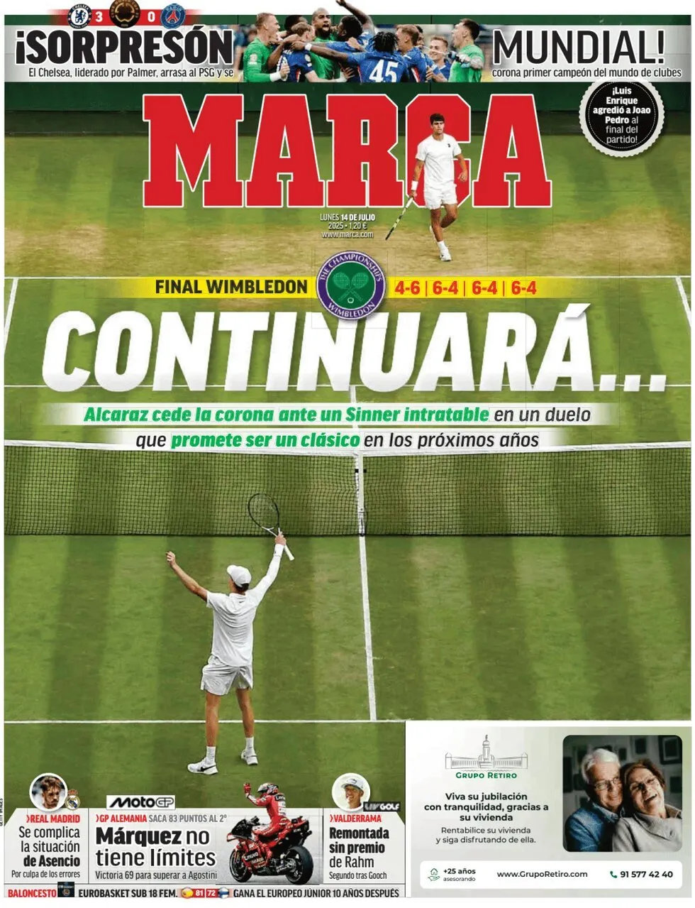 La vittoria di Sinner è stata un successo chiaramente internazionale vista l’importanza di Wimbledon. Per questo ad onorarlo non sono stati solo i giornali italiani, sportivi (in particolare) e non, ma anche quelli esteri che gli hanno dedicato, chi più e chi meno, abbastanza spazio. Cliccando sulle foto potrete vederle a schermo intero.